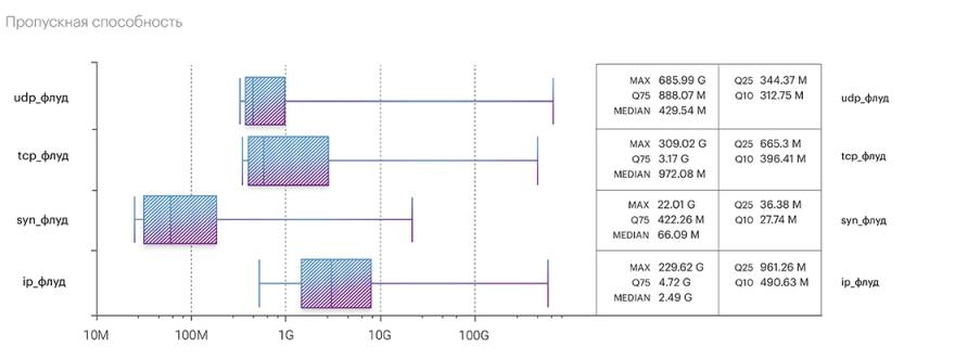 Продолжительность и пропускная способность атак по векторам и сегментам
