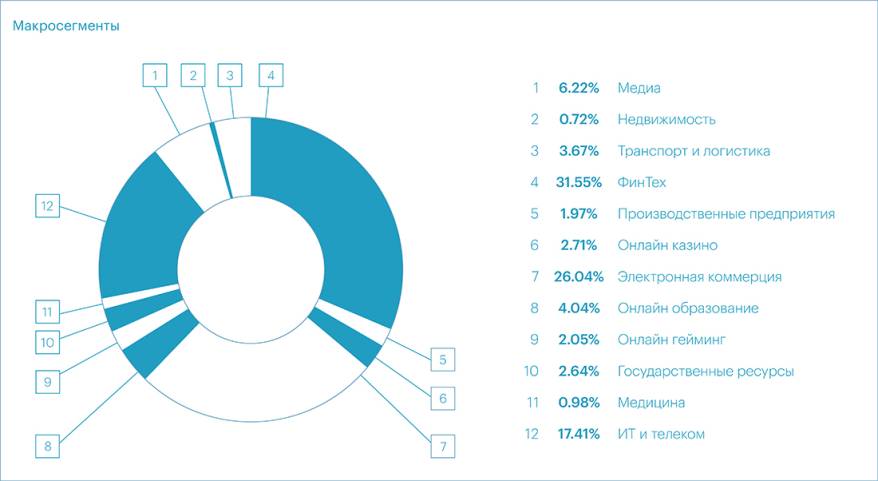 Распределение атак по сегментам в 4 квартале показало, что злоумышленники под конец года чаще атаковали компании из сектора Электронной коммерции - 40,70%. На втором месте с долей 29,04% расположился Финансовый сектор. В тройку лидеров также вошел сегмент Образовательных технологий с долей в 7,77%. При этом спускаясь на уровень ниже - микро сегменты - картина выглядит иначе: