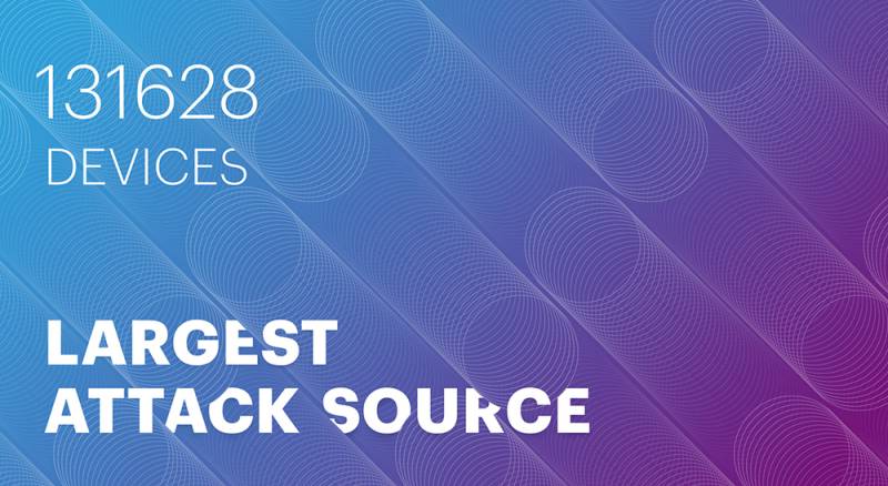 В первом квартале 2023 года не было никаких серьезных проблем с источниками атак, сетями, ботнетами и т. д. Самый значительный наблюдавшийся источник атаки включал в себя 131 628 устройств — почти столько же, сколько и в третьем квартале 2022 года.