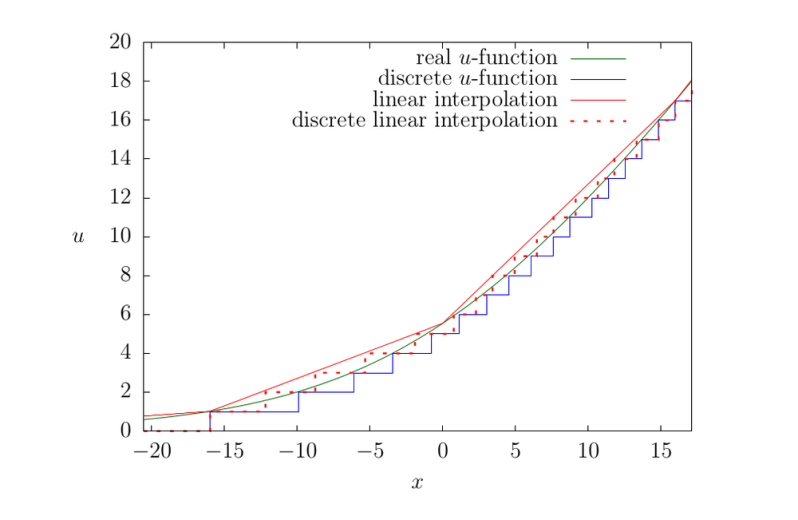 Один из очевидных способов дискретизации — из континуума относительных значений счетчика выбрать конечное подмножество идущих подряд целых чисел и немного модифицировать u-функцию, так чтобы она стала целочисленной.