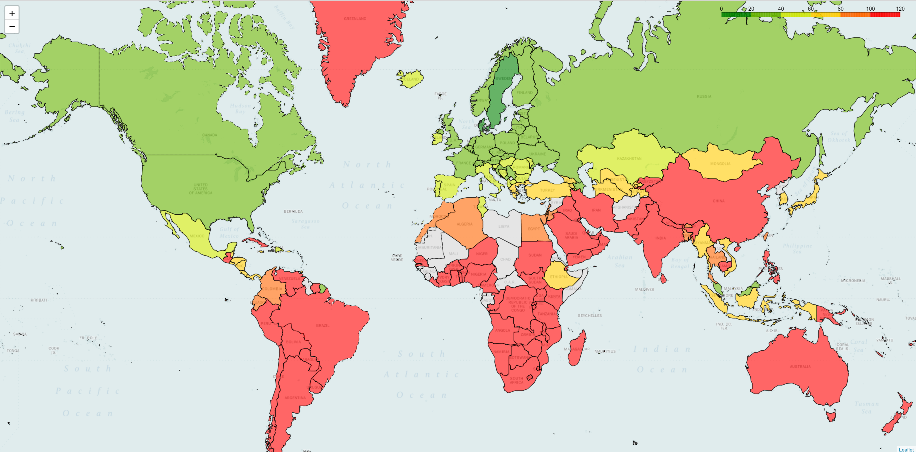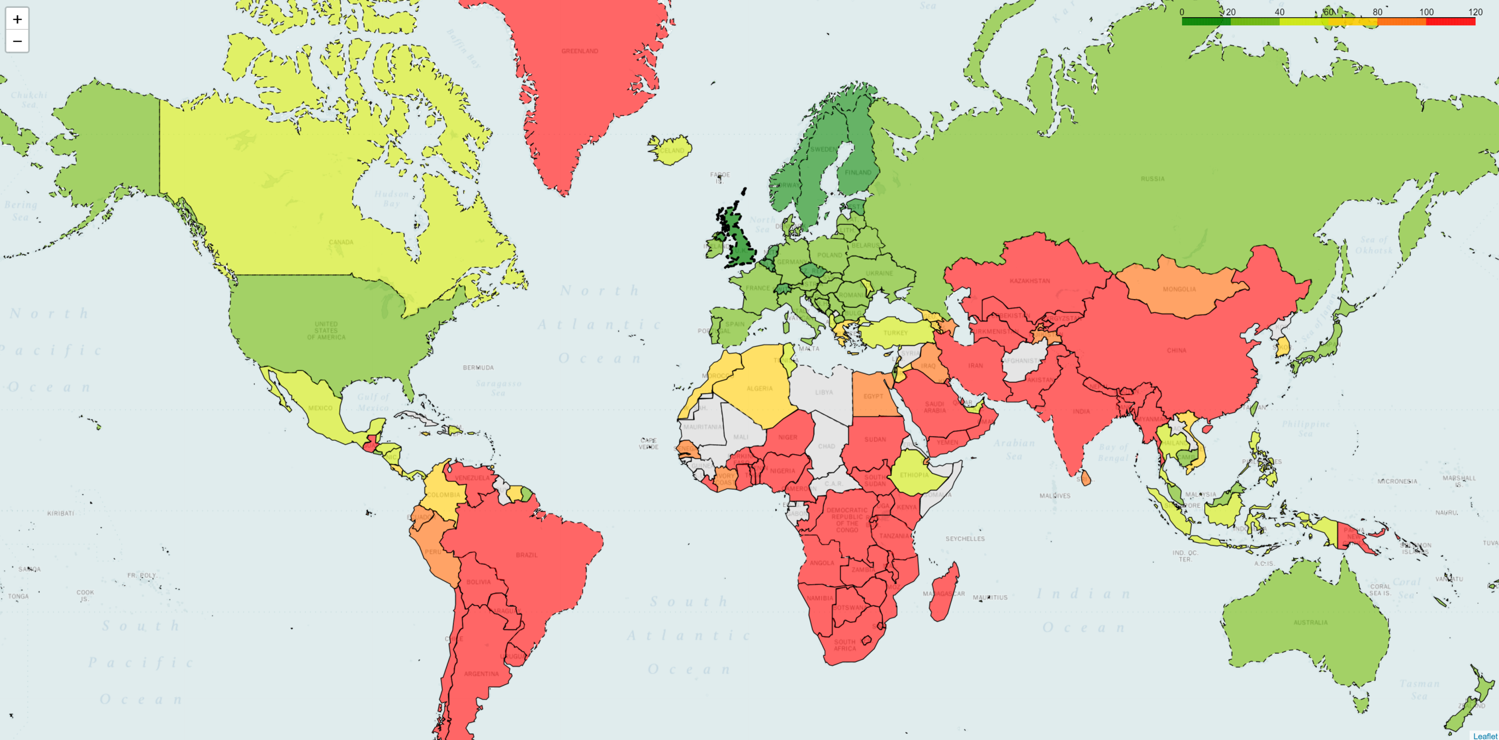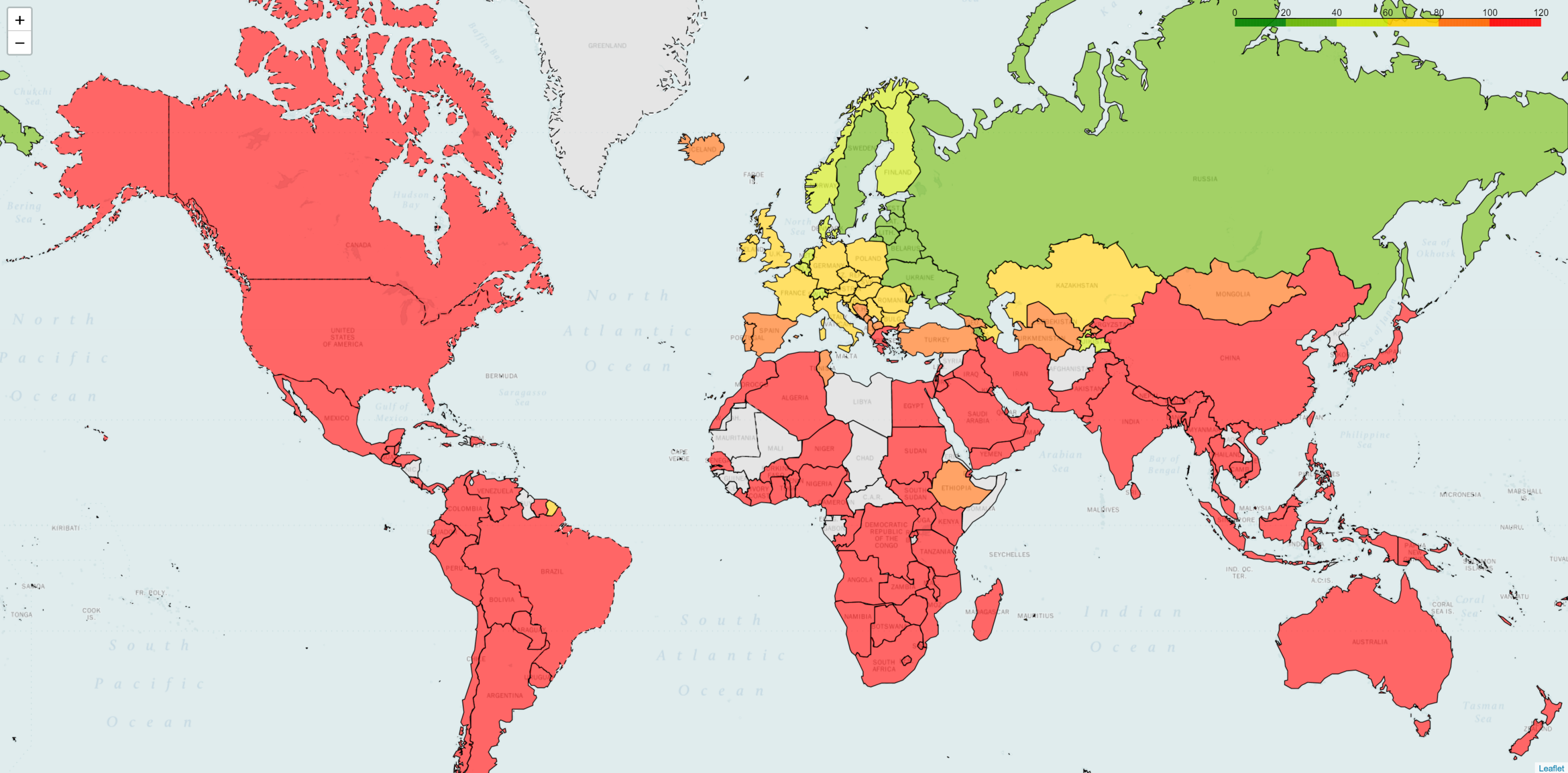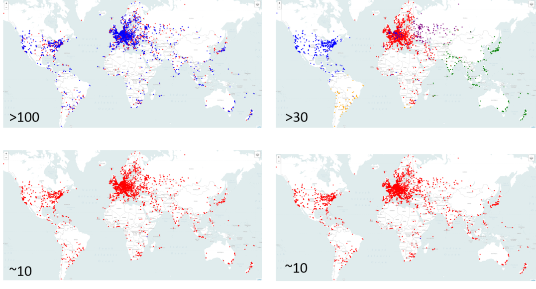 Вторая картинка соответствует компании с почти 40 точками присутствия, и, как можно видеть, карта задержек стала хуже.