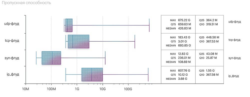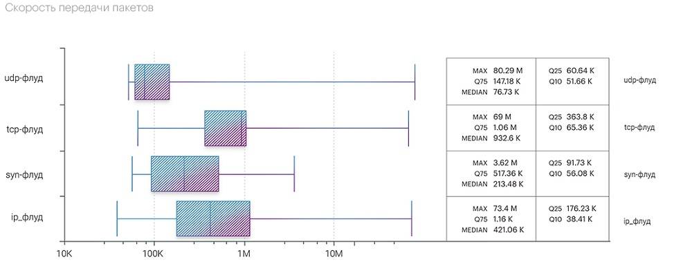 - Сложные (смешанные) атаки отметились самой высокой продолжительностью и пропускной способностью.