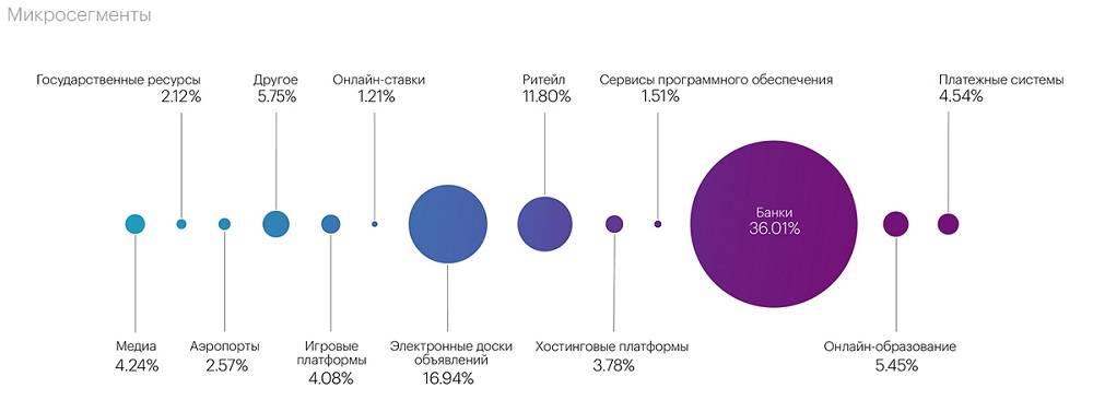 - Наиболее атакуемыми микросегментами стали банки, электронные доски объявлений и розничные продажи, что объясняется подготовкой и началом осеннего сезона.