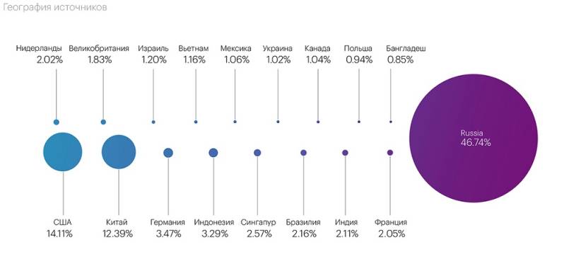 Географическое распределение источников атак