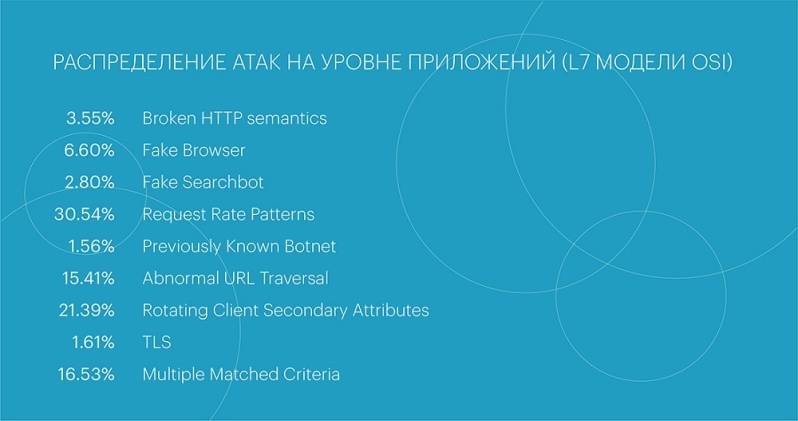 Средняя продолжительность атак на прикладном уровне в третьем квартале составила около 20 минут, а средняя интенсивность - 4,9 тысяч запросов в секунду.