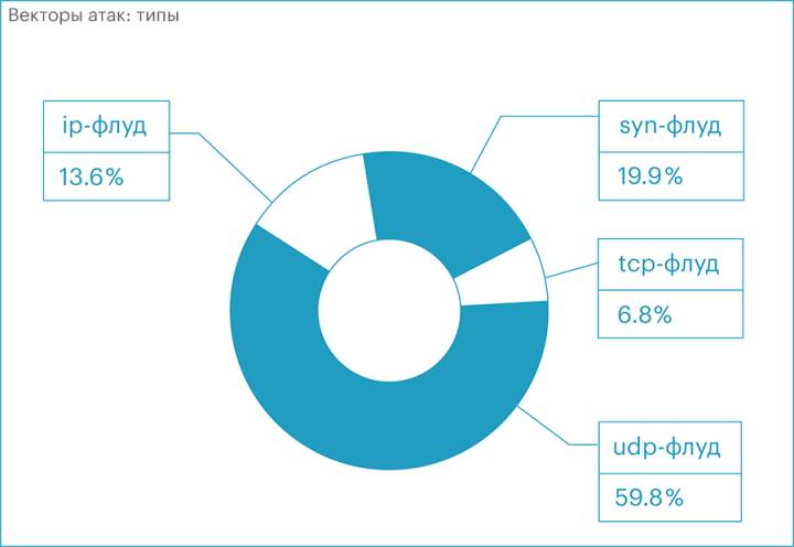 - Значительный рост UDP flood относительно первого квартала, с 37,44% до 60,1%.