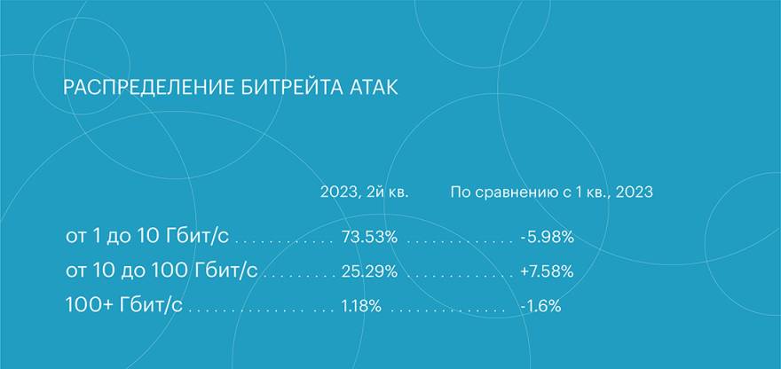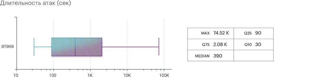 Длительность атак во втором квартале показала отрицательную динамику. Средняя продолжительность уменьшилась на 29,15%, практически вернувшись к показателям четвертого квартала 2022 года, составив 47 минут. Аналогичный показатель в первом квартале составлял более одного часа.