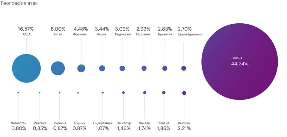 Результаты исследований, полученные по итогам второго квартала, показали, что блокировка по гео IP стала менее эффективной. Причиной тому послужило поведение злоумышленников, которые для обхода блокировки стали использовать локальные источники трафика в странах, которых располагаются их жертвы.