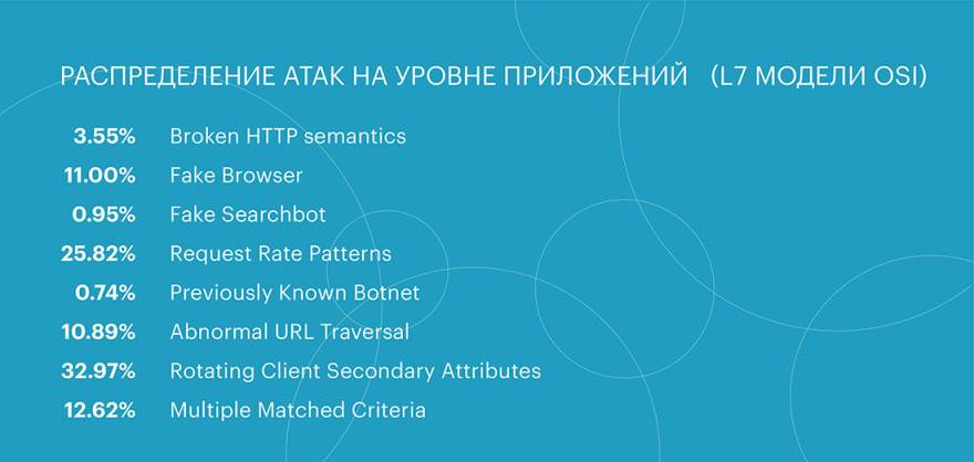Распределение атак на уровне приложений (L7 модели OSI) - Application Layer Attack distribution