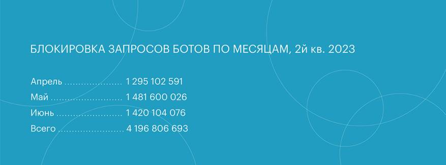 В сравнении с первым кварталом количество атак ботов продолжило расти, достигнув 4 196 806 693 и превысив показатели первого квартала более чем на 1 миллиард. Больше всего атак ботов пришлось на май с показателем 1,48 млрд. заблокированных запросов ботов.