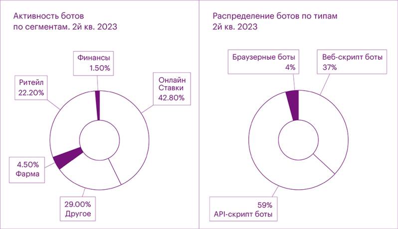 - Активность ботов выросла более чем на 13 млн запросов ботов в день в среднем. Больше всего атакам ботов во втором квартале подверглись сегменты беттинга и электронной коммерции. А общее количество запросов ботов во втором квартале выросло на 1 млрд, относительно показателей первого квартала.