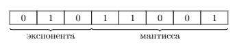 Рис. 2: разбиение битов счётчика на мантиссу (\({\bf M} = 5\) бит) и экспоненту (\({\bf E} = 3\) бит)