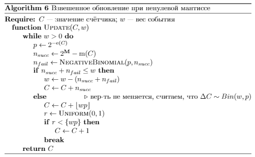 Другой способ уменьшить количество бит, необходимое для хранения значения счётчика, — использование распада. Об этом подходе мы рассказываем здесь, а также собираемся в ближайшее время опубликовать ещё одну заметку по теме.